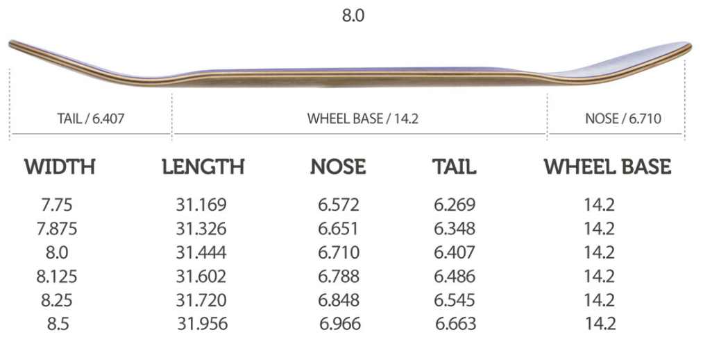 Dosky kúpite v šírkach 7.825, 8.0, 8.125, 8.25, 8.5.