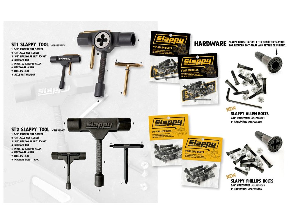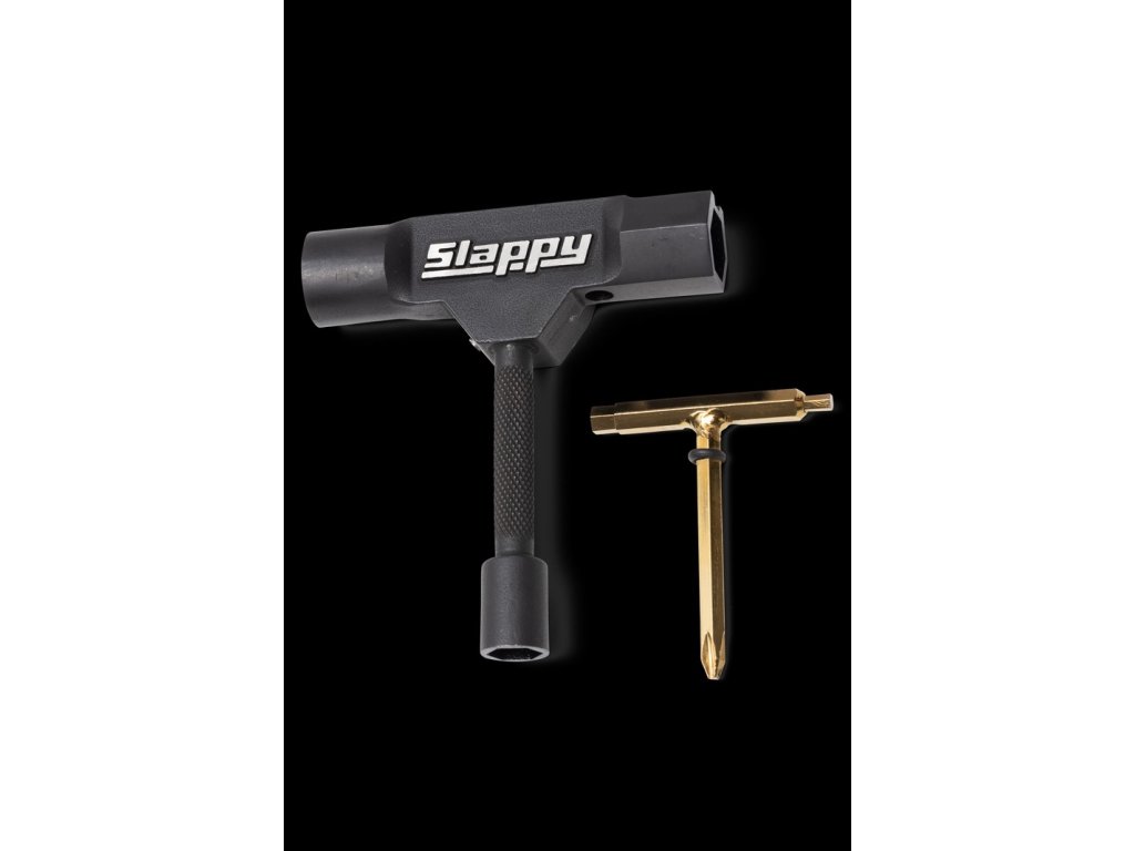 Slappy Tool ST1 je kompaktný a odolný skate tool navrhnutý tak, aby zvládol všetko, čo potrebuješ pri údržbe skatu. Vyrobený z kvalitného kovu s elegantným čiernym dizajnom a embosovaným logom, tento nástroj kombinuje funkčnosť s profesionálnym vzhľadom.