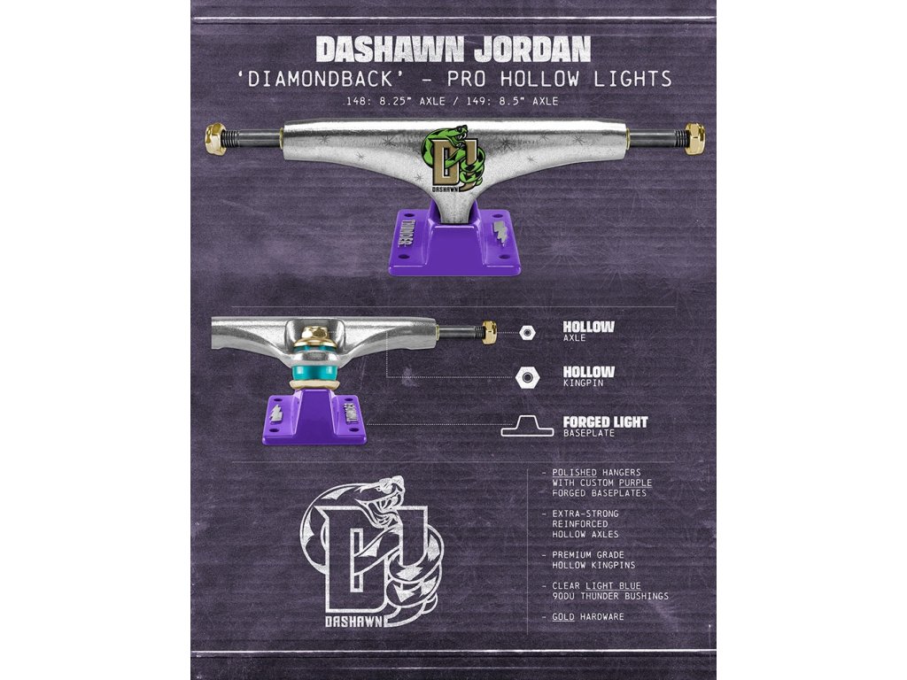 Model: Thunder - Trucky Dashawn Jordan Diamondback Hollow Lights 149 dostali odlahčený baseplate, duté kingpiny a osky