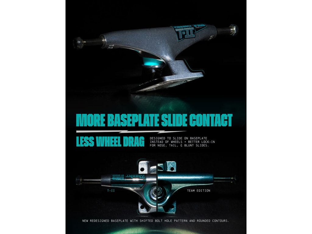 Thunder Trucks predstavuje novinku – modelovú radu T-II, ktorá reaguje na aktuálne požiadavky skejtovej komunity. Tieto trucky sú vyššie než predchádzajúce verzie, s výškou až 54 mm, čo je o 2 mm viac. Nová geometria prináša rýchlejšiu odozvu pri zatáčaní, zatiaľ čo upravený baseplate znižuje trenie koliesok pri trikoch ako tailslide či noseslide. Vylepšený materiál truckov zvyšuje ich odolnosť a predlžuje životnosť. Navyše, nové bushingy a pivot cupy zlepšujú celkový pocit z jazdy a kontrolu nad doskou.