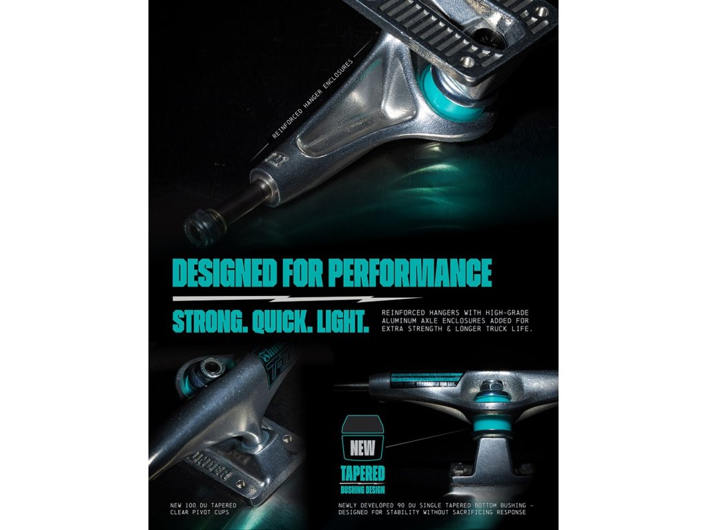 Thunder Trucks predstavuje novinku – modelovú radu T-II, ktorá reaguje na aktuálne požiadavky skejtovej komunity. Tieto trucky sú vyššie než predchádzajúce verzie, s výškou až 54 mm, čo je o 2 mm viac. Nová geometria prináša rýchlejšiu odozvu pri zatáčaní, zatiaľ čo upravený baseplate znižuje trenie koliesok pri trikoch ako tailslide či noseslide. Vylepšený materiál truckov zvyšuje ich odolnosť a predlžuje životnosť. Navyše, nové bushingy a pivot cupy zlepšujú celkový pocit z jazdy a kontrolu nad doskou.
